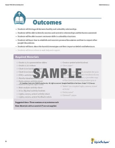 *Note: the Kids in the Know Program contains multiple lessons per grade.